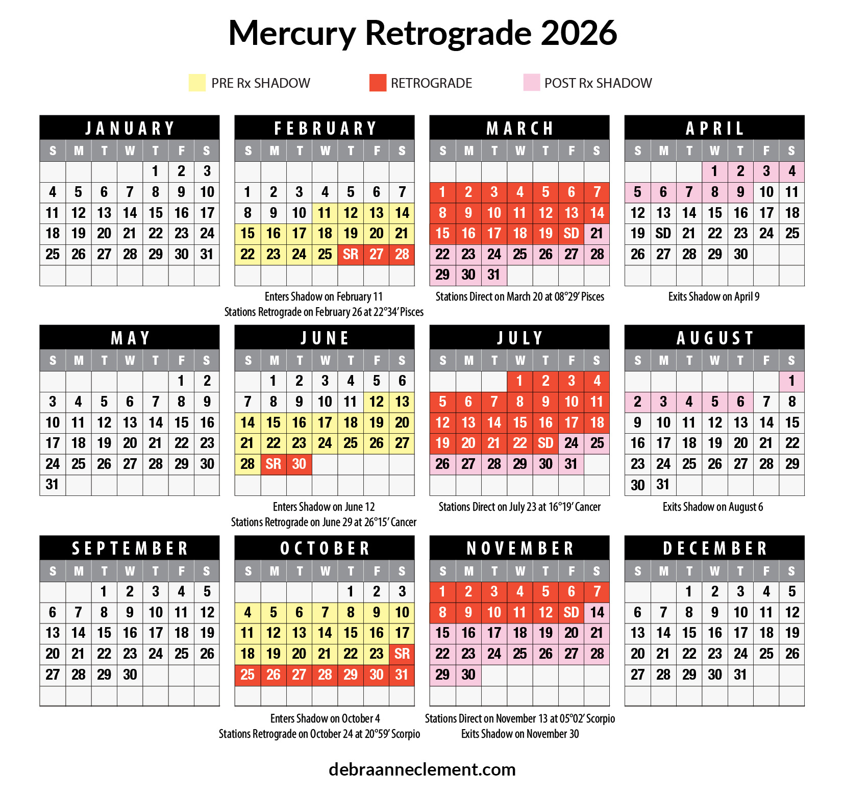 By the time Mercury stations retrograde, it has already traveled passed the degree that it will eventually station direct (go forward). This degree marks the beginning of the Pre-Rx shadow that will be in effect until Mercury stations retrograde. From this point forward, Mercury appears to be slowing down.
